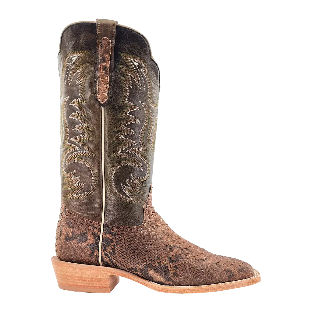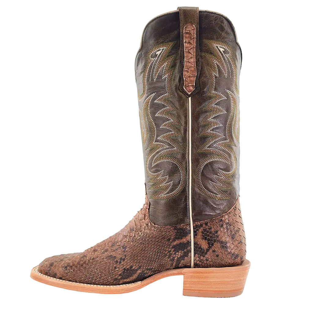 R. Watson presents these back cut python and cowhide exotic western boots. These boots have a 10 row stitch pattern, R. Watson comfort system, all leather stacked heel, counters, solid steel shank, and 10 iron outsole. 13″ total in height.
