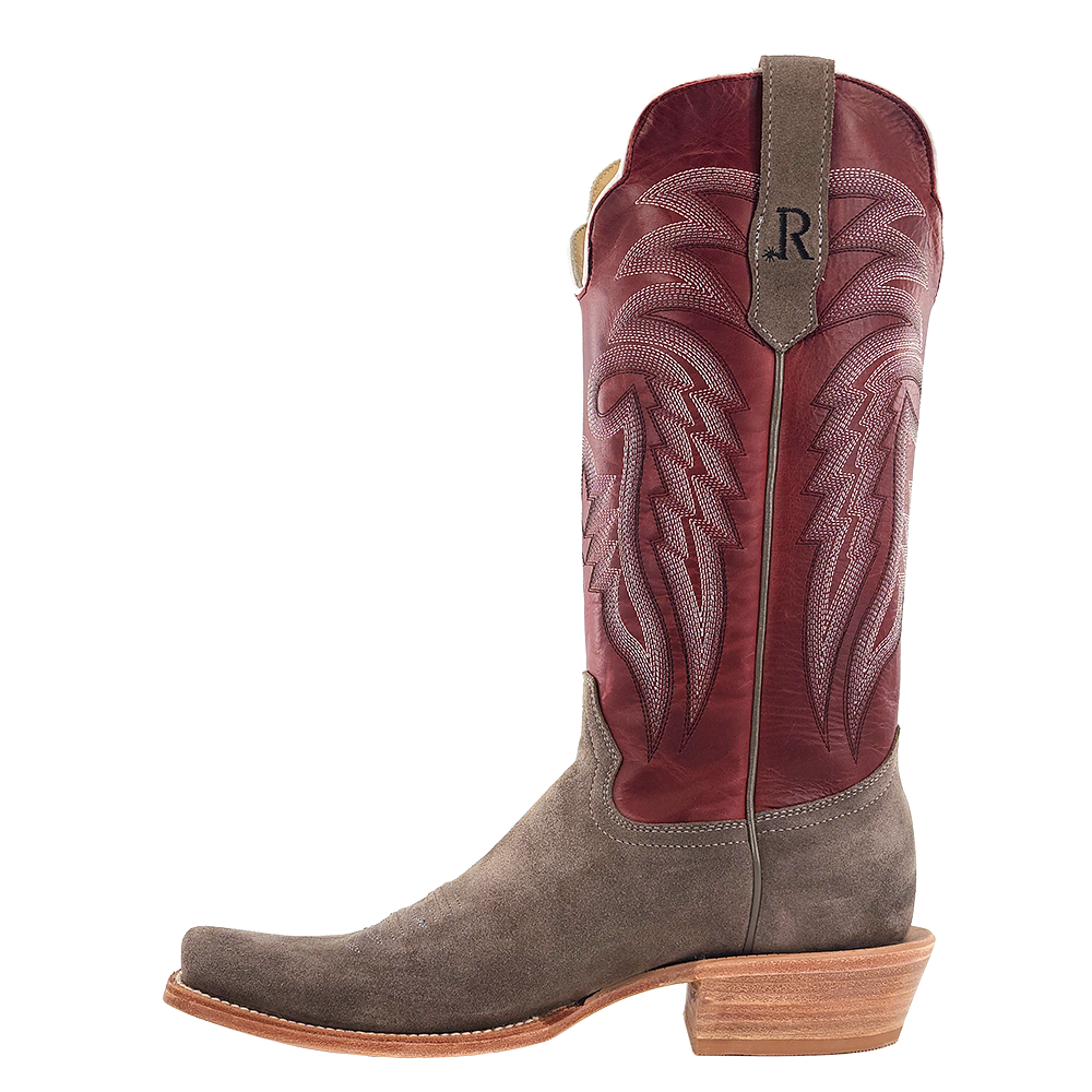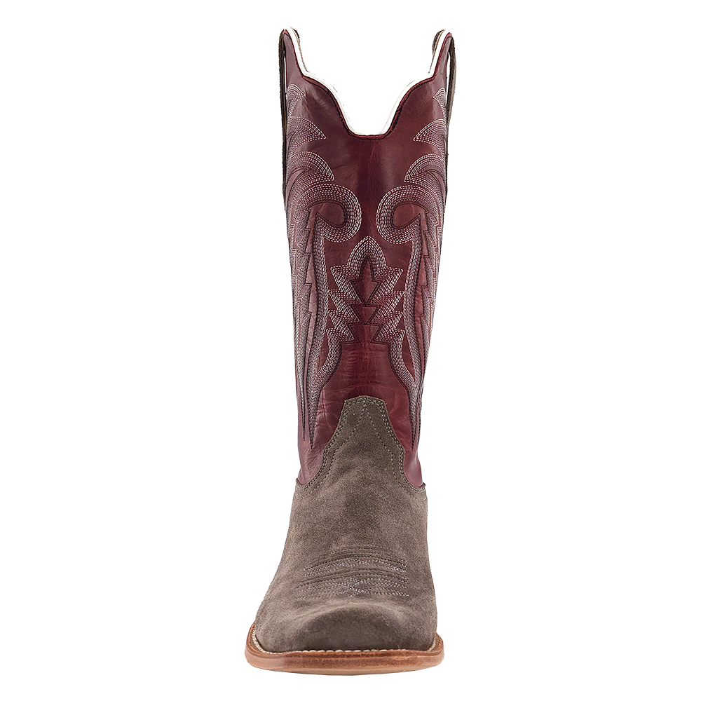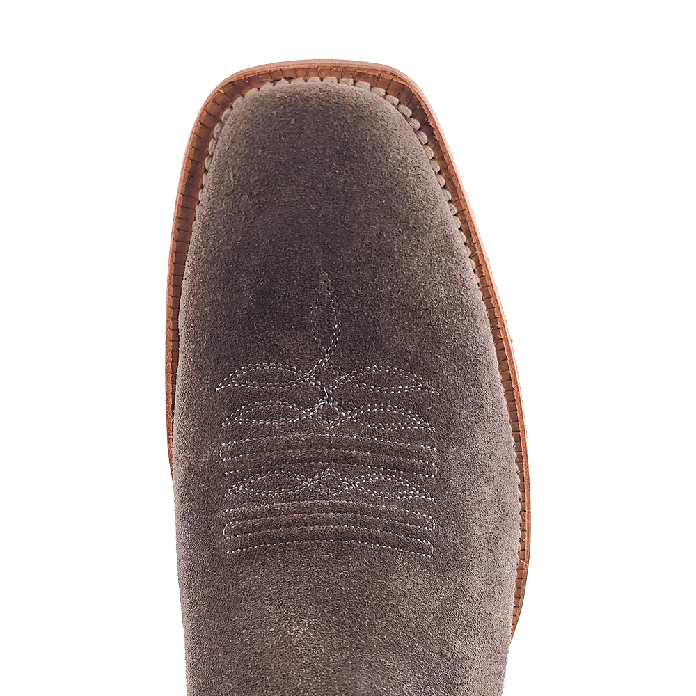 R. Watson presents these roughout and cowhide western boots. These boots have a 10 row stitch pattern, R. Watson comfort system, all leather stacked heel, counters, solid steel shank, and 10 iron outsole. 13″ total in height.